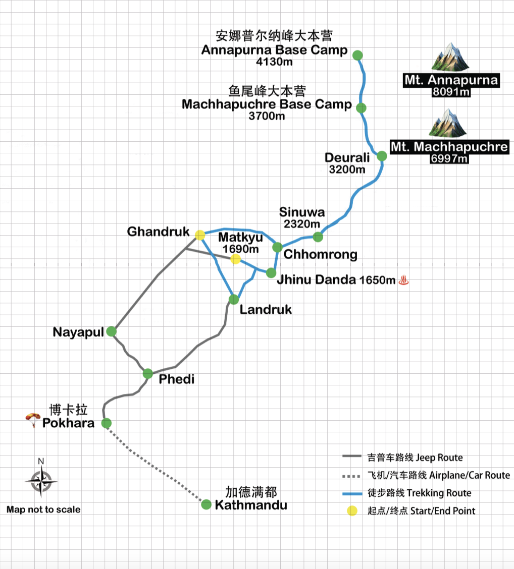 After a short scenic Flight to pokhara, drive to Jhinudanda and begin a short but scenic climb to chhomrong a beautiful Gurung village get way to ABC, View of Machhpuchre and Annapurna South.